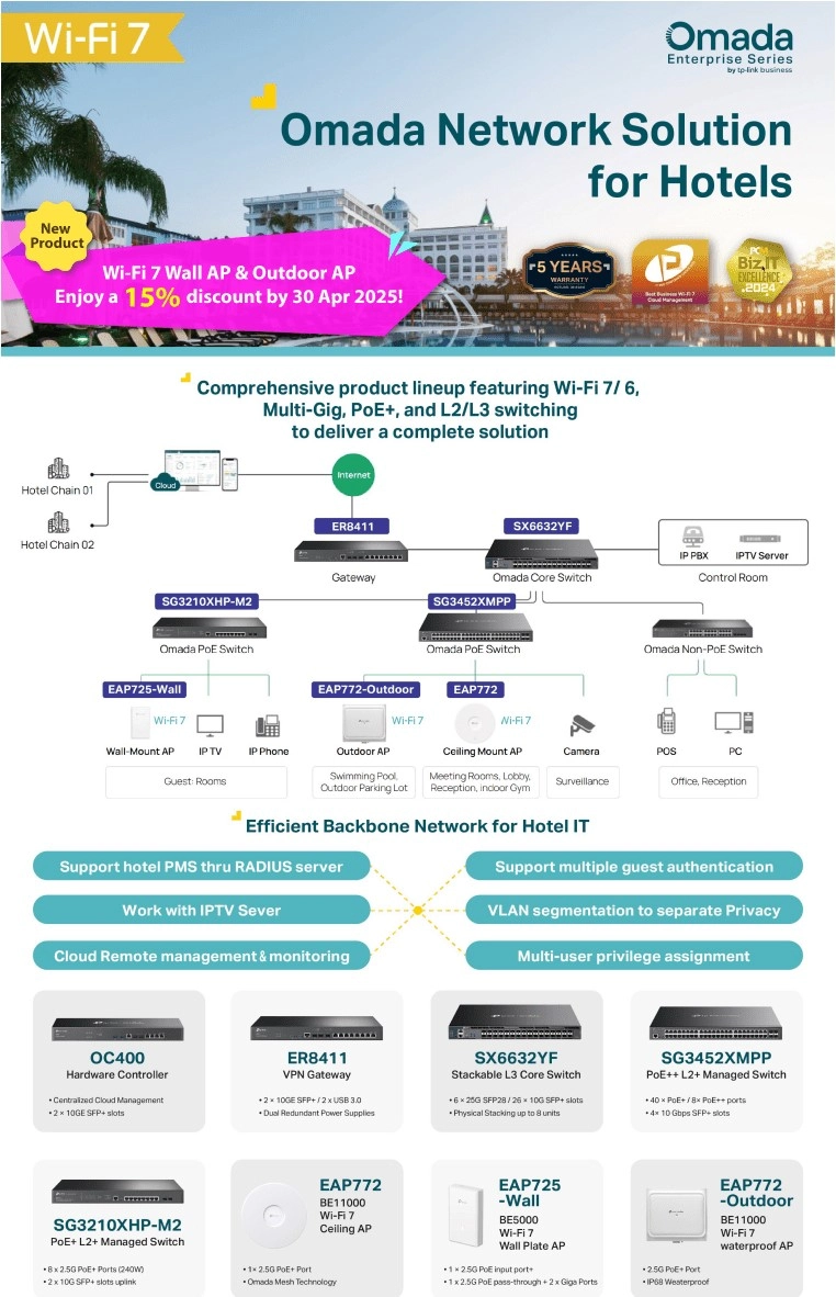 Omada 24-Port Gigabit Stackable L3 Managed Switch with 4 10GE SFP+ Slots PORT: 24× Gigabit RJ45 Por..