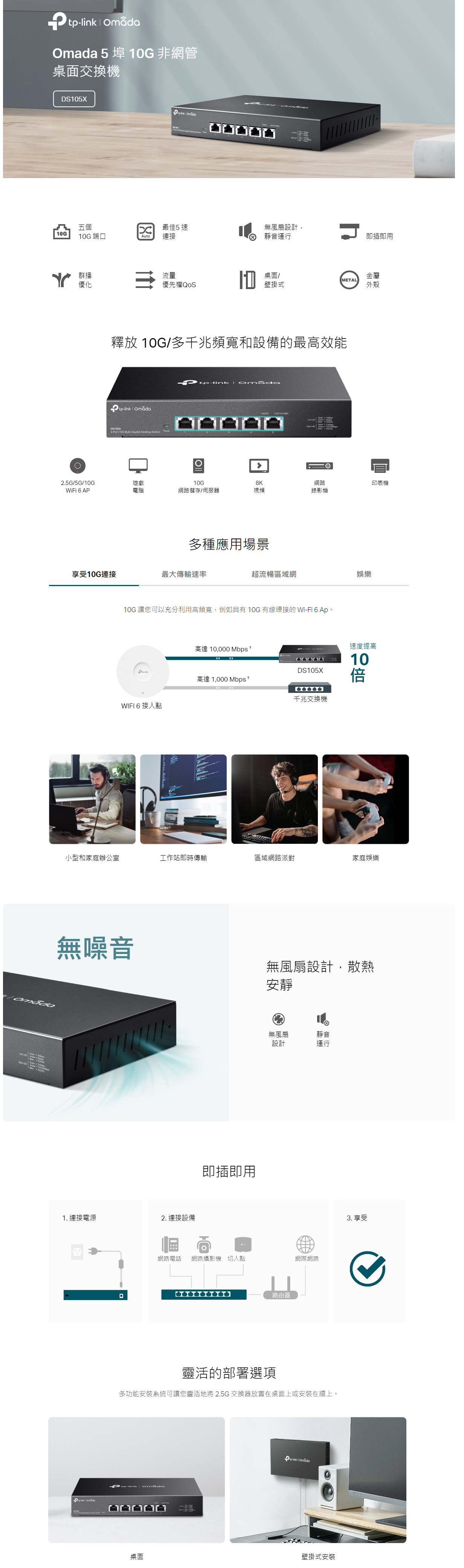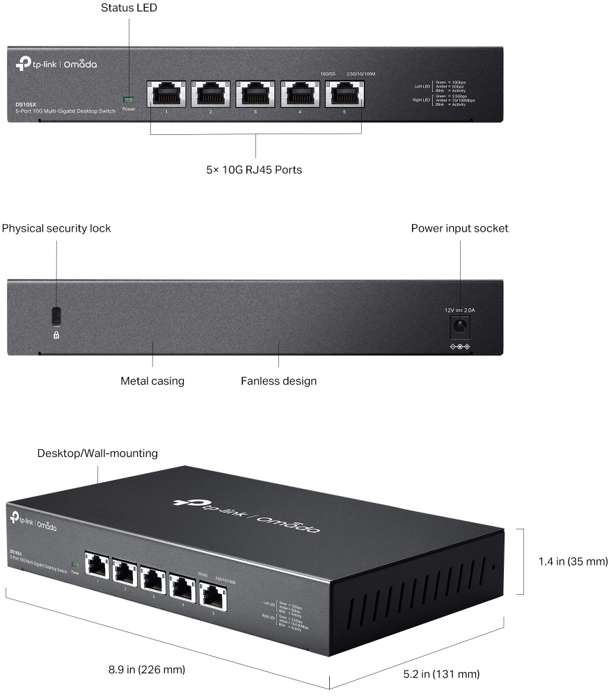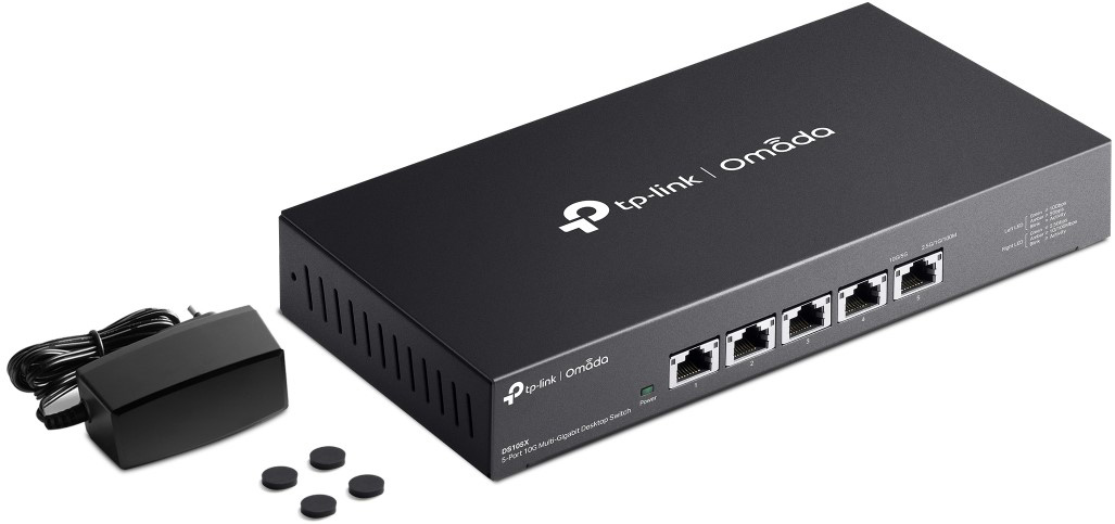 | Omada 5-Port 10G Multi-Gigabit Desktop Switch, 5× 10G RJ45 Ports, Desktop Steel Case | |