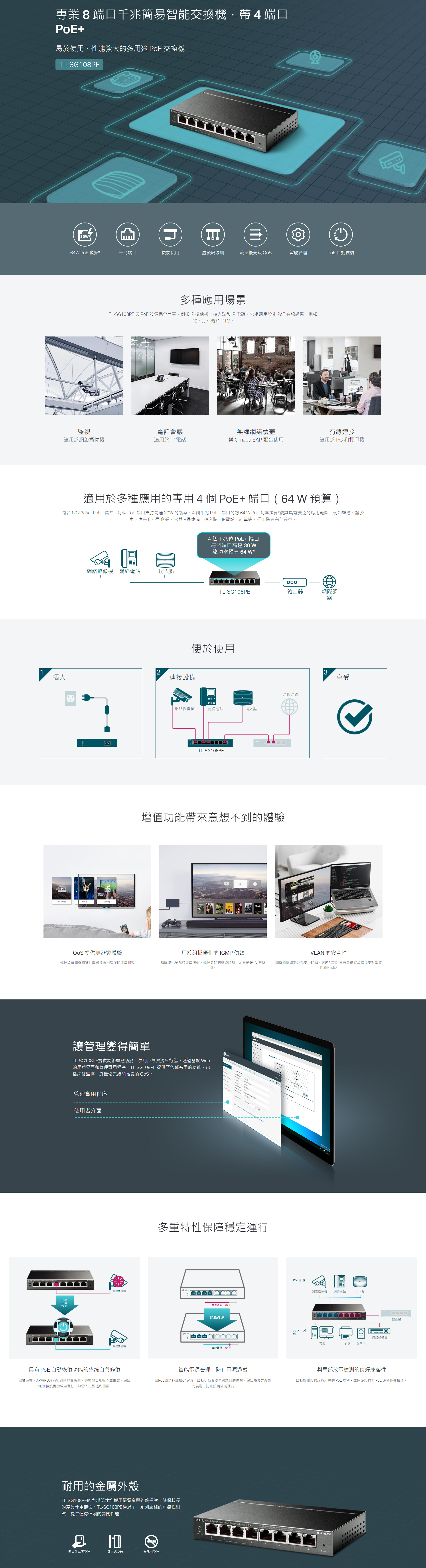 | 8-Port Gigabit Easy Smart Switch with 4-Port PoE+ (64W),Desktop Steel Case | |