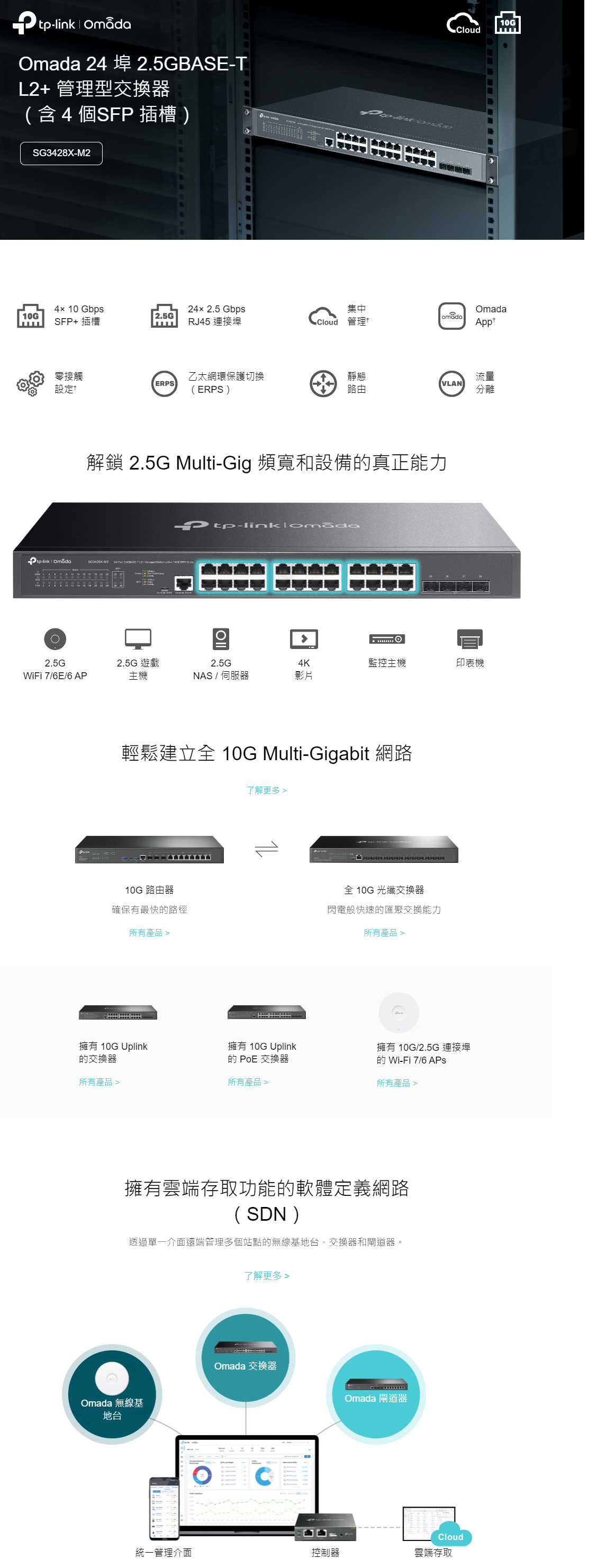 | Omada 24-Port 2.5GBASE-T L2+ Managed Switch with 4 10GE SFP+ Slots, 1U 19-inch Rack-mountable Steel Case | |