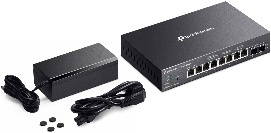 | Omada 8-Port 2.5GBASE-T and 2-Port 10GE SFP+ Smart Switch with 8-Port PoE+ (160W), Desktop & Fanless Steel Case | |