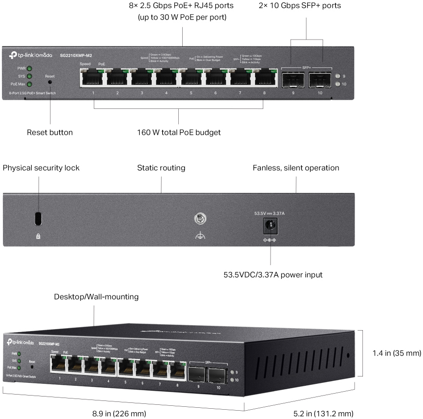 TP-Link Omada 8-Port 2.5GBASE-T and 2-Port 10GE SFP+ Smart Switch, SG2210XMP-M2