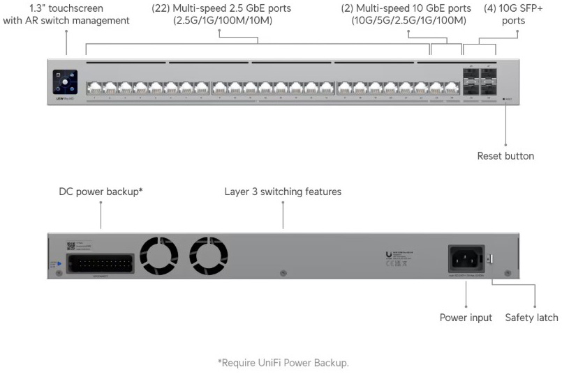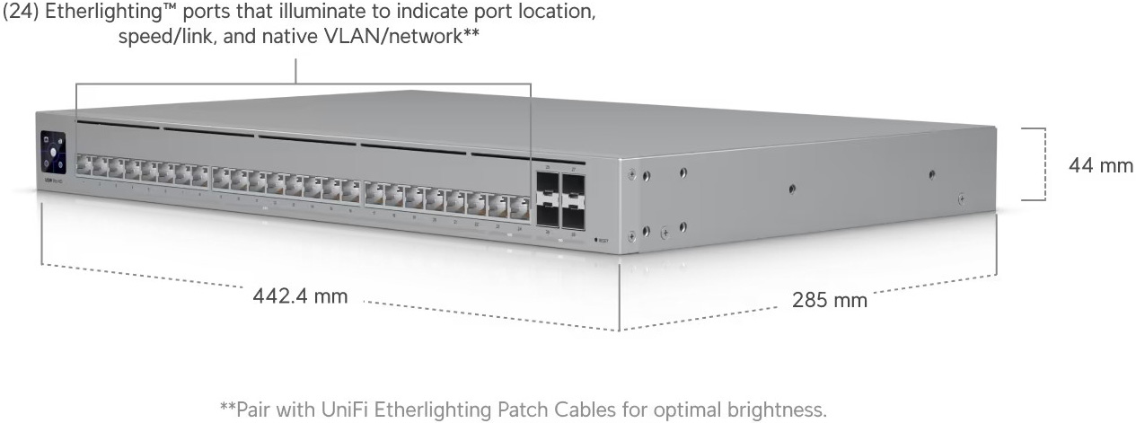 Professional-grade, Layer 3 Etherlighting™ switch with (2) 10 GbE, (22) 2.5 GbE, and (4) 10G SFP+ ports.