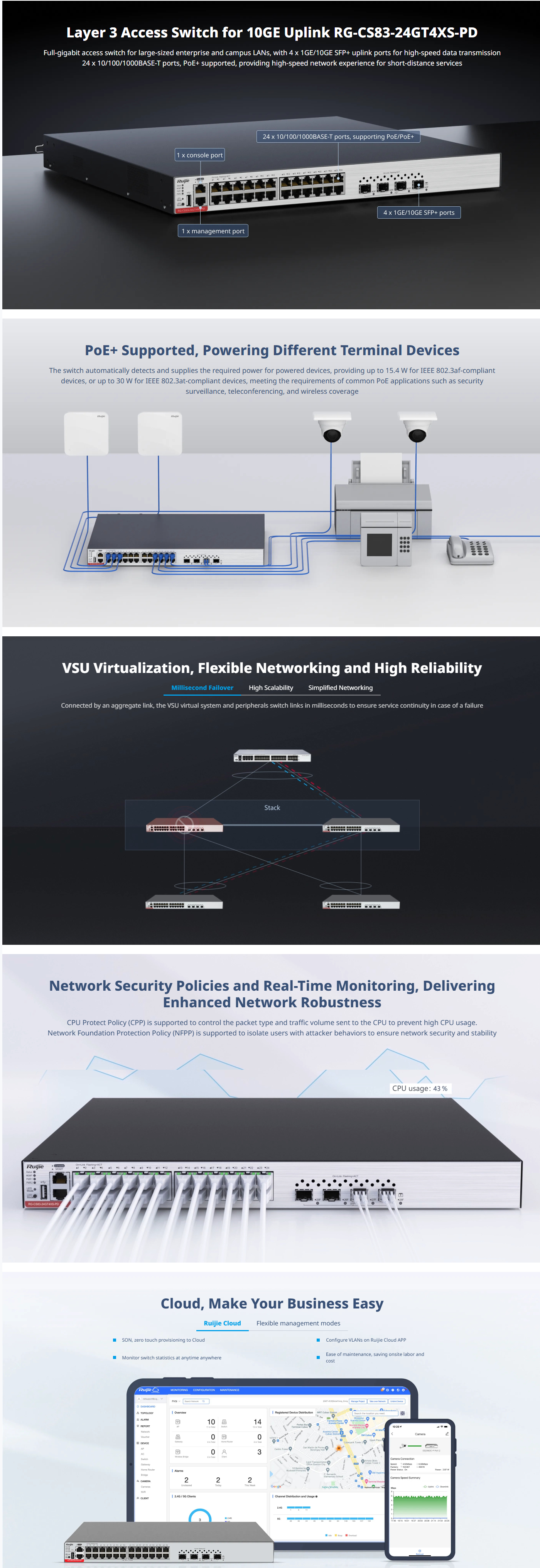 Switches : Ruijie Reyee PoE Managed Switch, RG-CS83-24GT4XS-PD ...