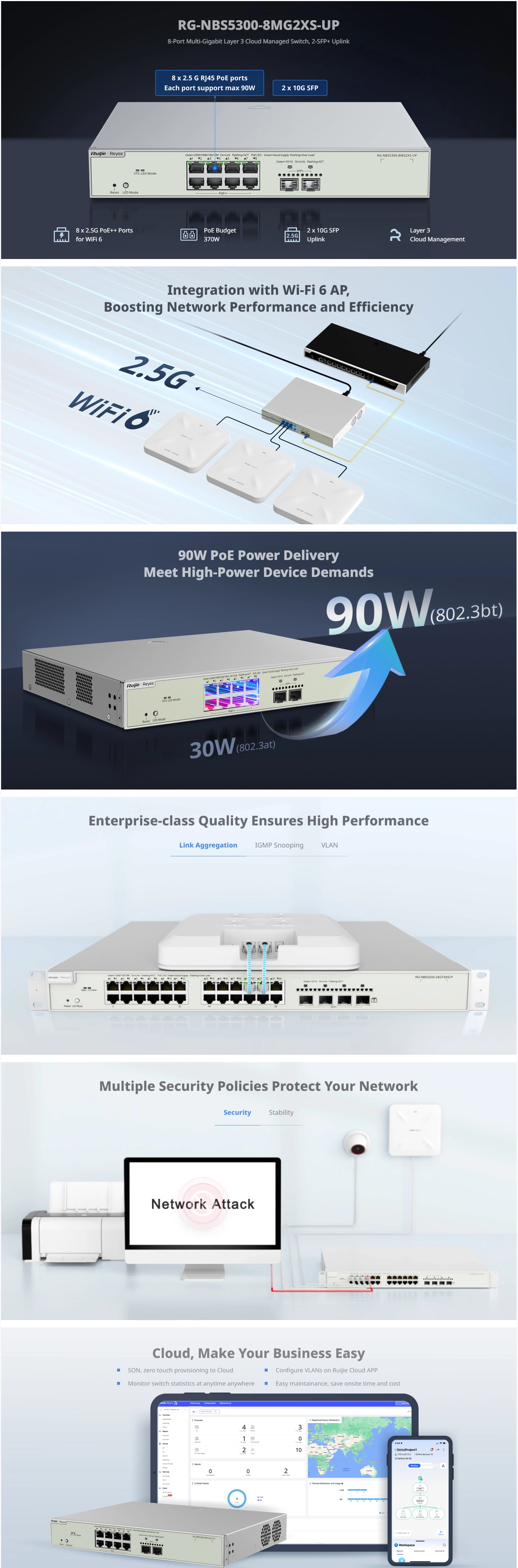 Reviews Over Ruijie Reyee Gigabit PoE Managed Switch, RG-NBS5300-8MG2XS-UP