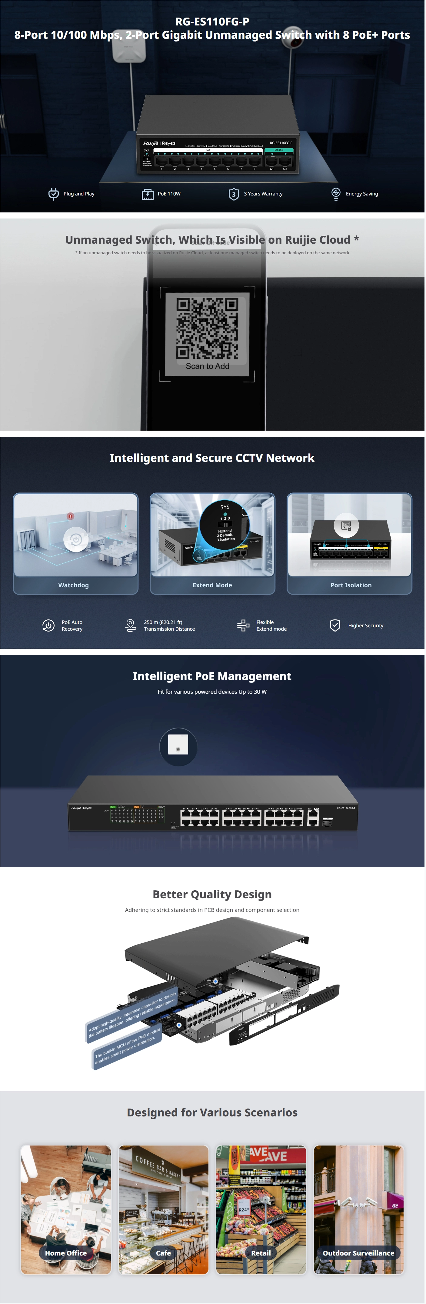 Ruijie Reyee PoE Unmanaged Switch, RG-ES110FG-P