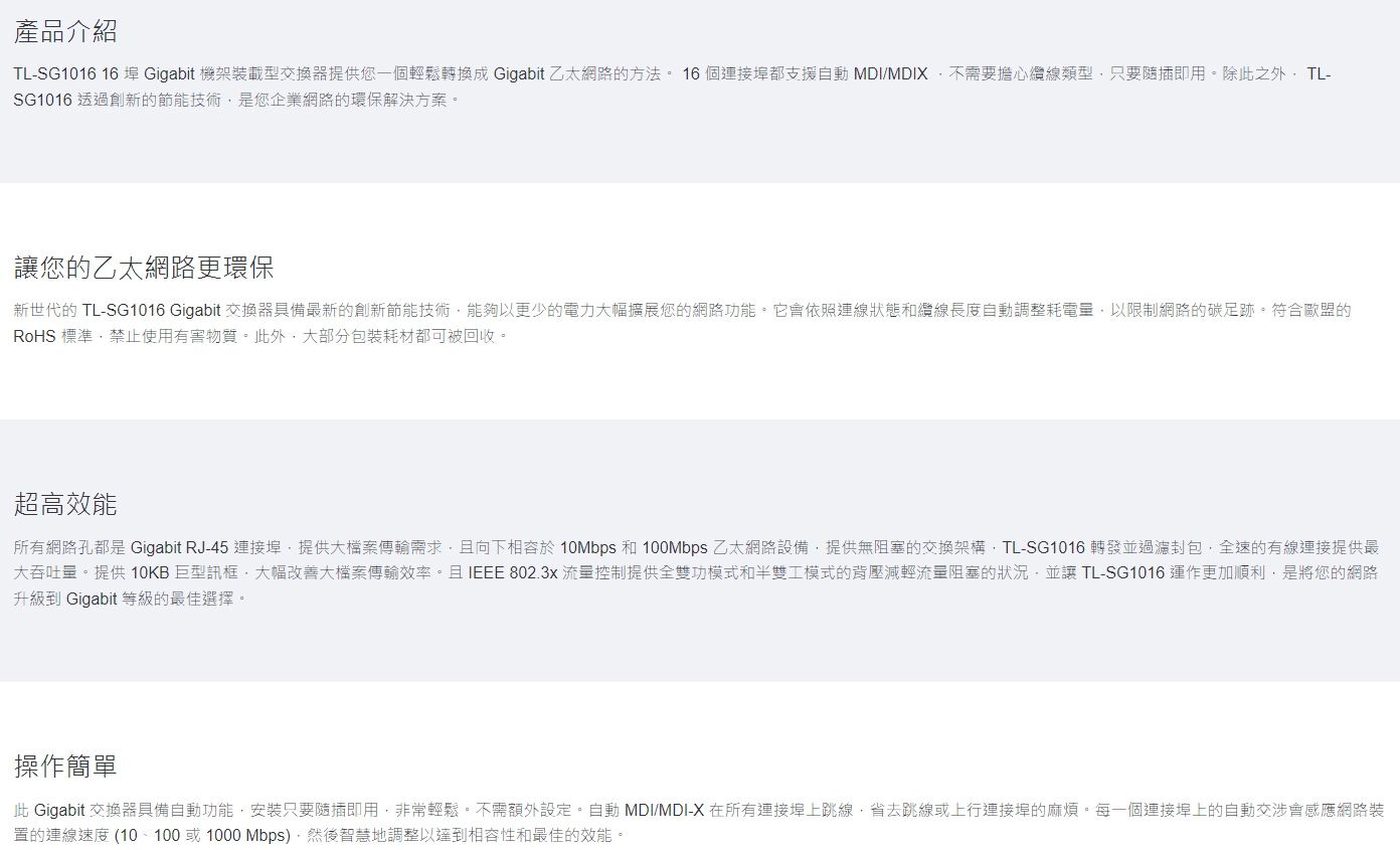 | 16-Port Gigabit Switch,19-inch Rack-mountable Steel Case | |