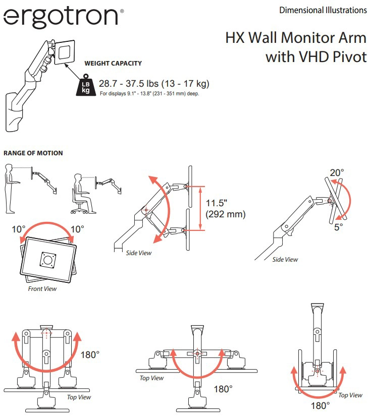 評論結束 Ergotron HX壁掛式顯示器支臂帶特重轉軸, 45-694-216 (白色)