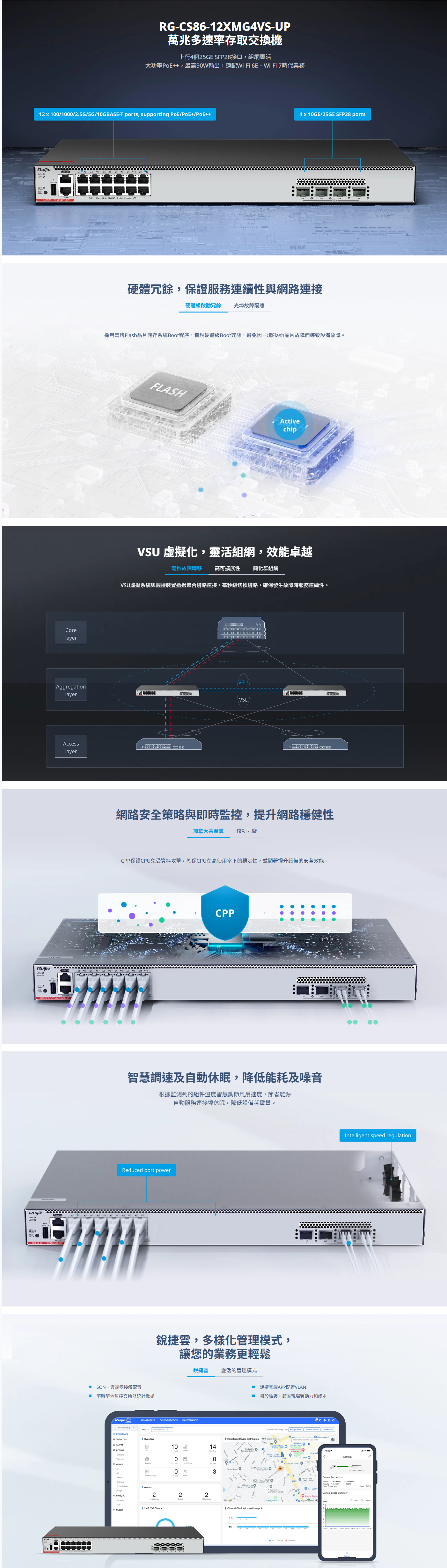 | 提供快速的硬體處理能力和良好的操作體驗,滿足企業園區網路高速、安全、智慧化的需求。 | |