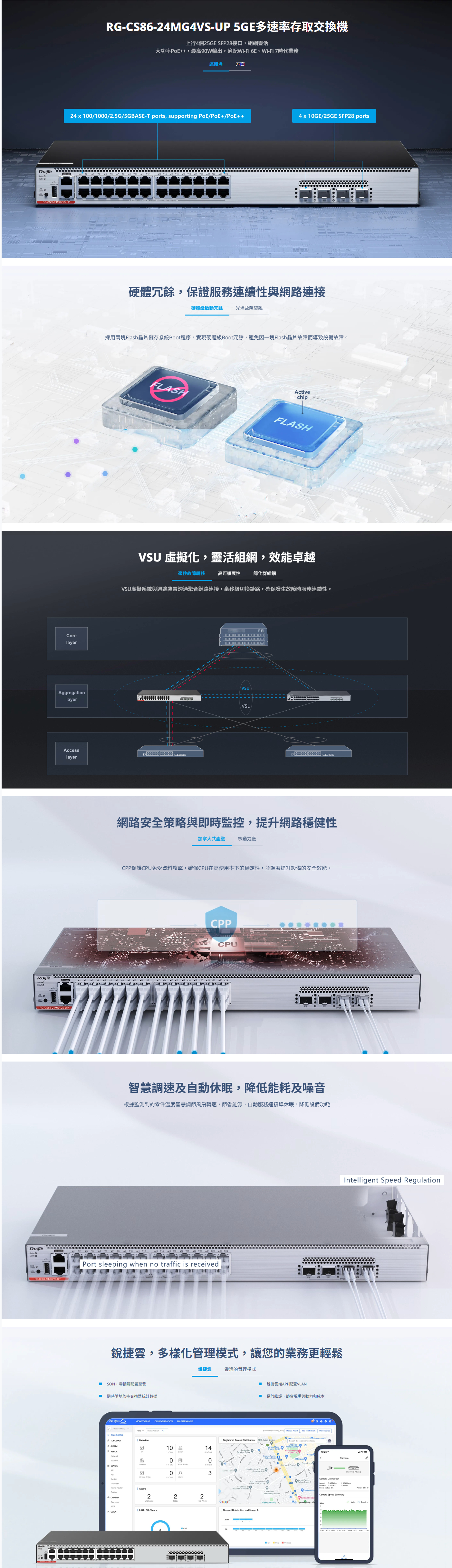 | 提供快速的硬體處理能力和良好的操作體驗,滿足企業園區網路高速、安全、智慧化的需求。 | |