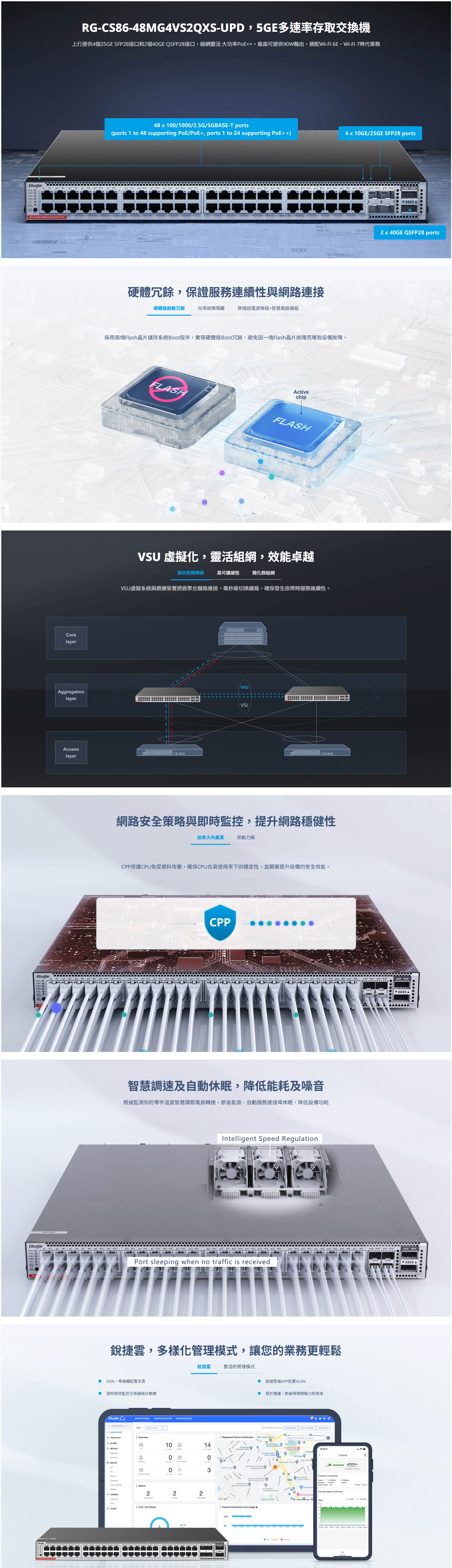 | 提供快速的硬體處理能力和良好的操作體驗,滿足企業園區網路高速、安全、智慧化的需求。 | |