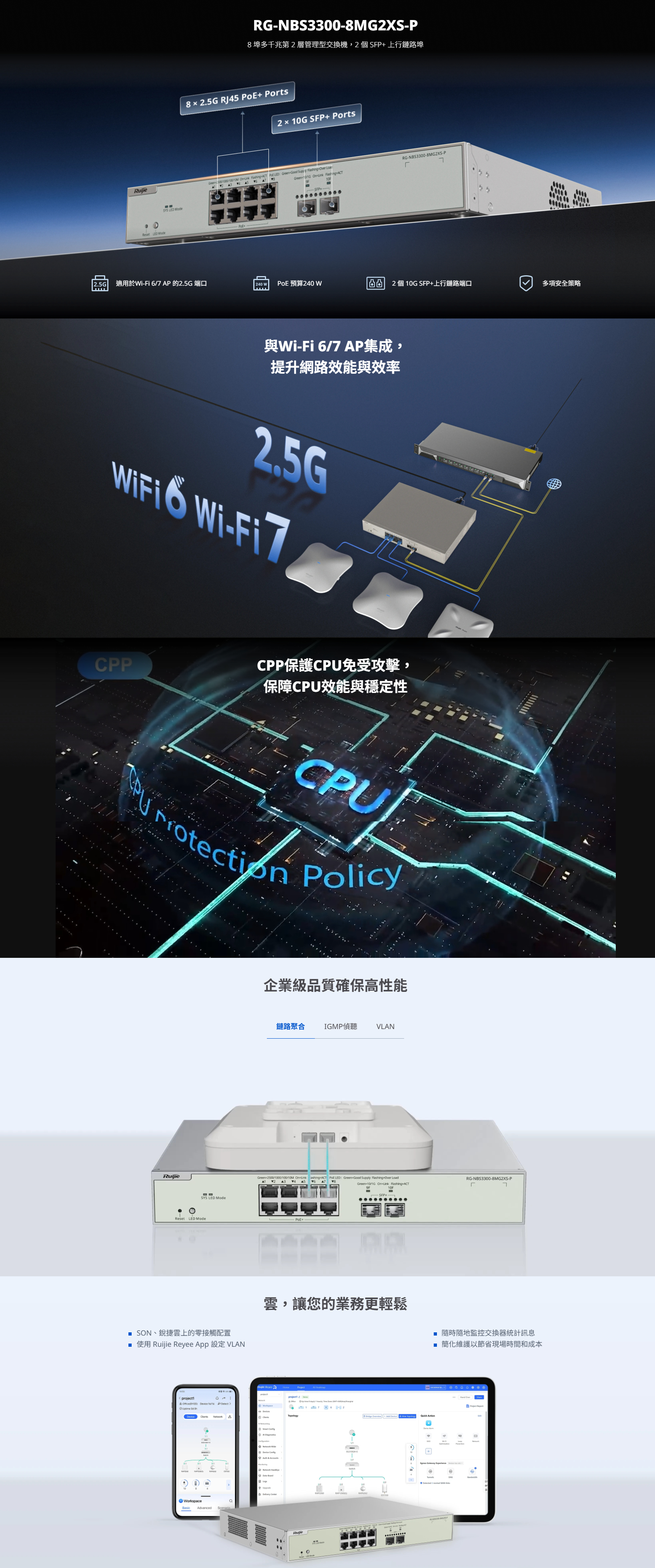| 產品描述 | 8-Port Multi-Gigabit Layer 2 Managed Switch, 2 x SFP+ Uplink Ports;1 x fixed power supply module(Rated voltage range: 100 V AC to 240 V AC);Maximum power consumptionNo PoE load: <27W; Full PoE load: <278W |