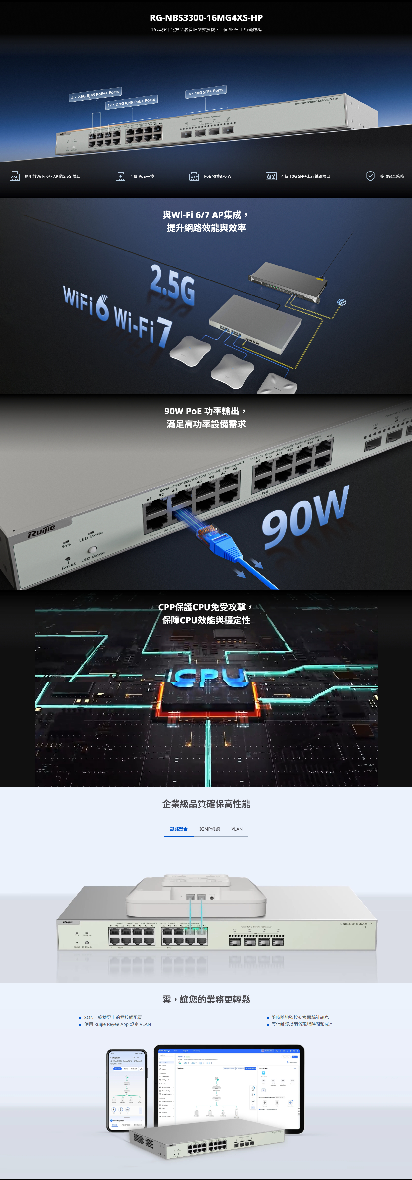 | 產品描述 | 16-Port Multi-Gigabit Layer 2 Managed Switch, 4 x SFP+ Uplink Ports;1 x fixed power supply module(Rated voltage range: 100 V AC to 240 V AC);Maximum power consumption No PoE load: <40W; Full PoE load: <460W |
