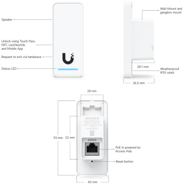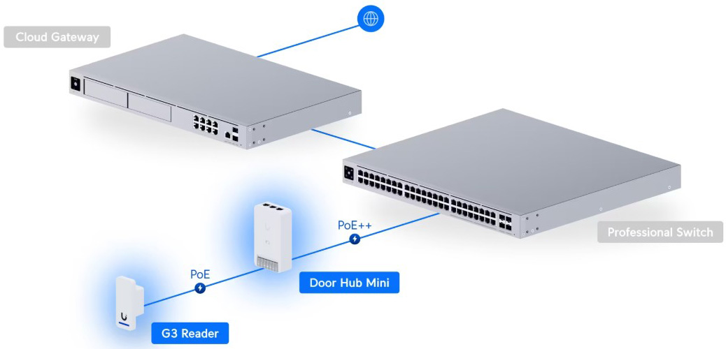 A simple, all-in-one kit for UniFi Access, designed to manage a single door with one reader. Supports seamless setup and Touch Pass for modern, secure access control. |