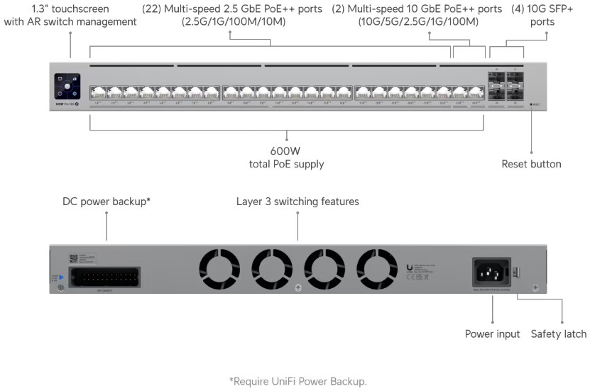 | 網絡插槽 | (22) (All PoE++) 2.5 GbE RJ45 (2) (All PoE++) 10 GbE RJ45 (4) 10G SFP+ |