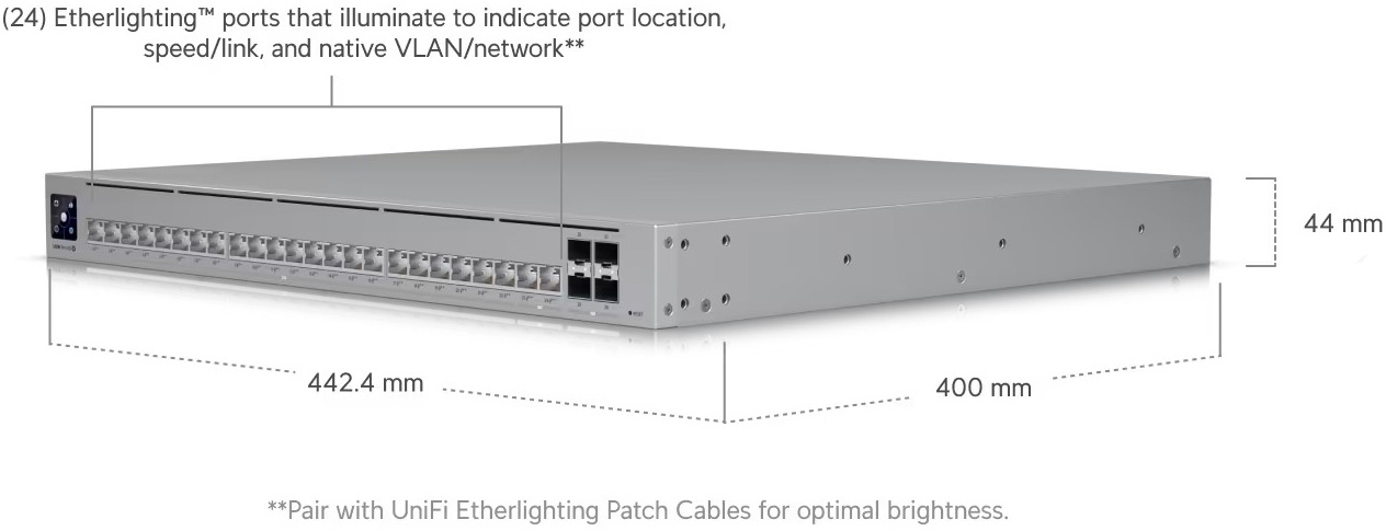 專業級第 3 層 Etherlighting™ 交換機,附 (2) 10 GbE PoE++、(22) 2.5 GbE PoE++ 和 (4) 10G SFP+ 連接埠。 |