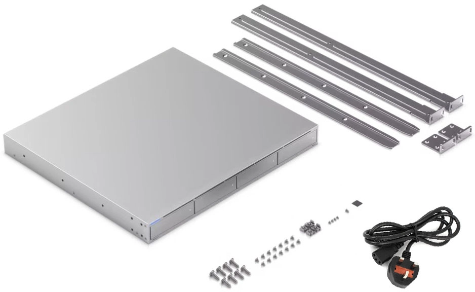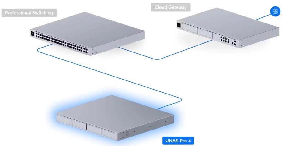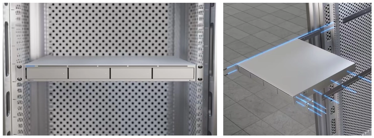1U 機架式 NAS,配備 (4) 個 2.5/3.5 吋硬碟位元和 (2) 個 M.2 NVMe SSD 快取插槽,提供更快的存取速度、更低的延遲和高可用性的 10 Gbps 網絡,適用於大規模檔案儲存和共用。