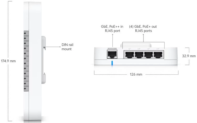 | PoE Interface | (1) PoE++ input, 50V DC, 1A (4) PoE+ outputs, 50V DC, 30W per port (Max 45W aggregated) |